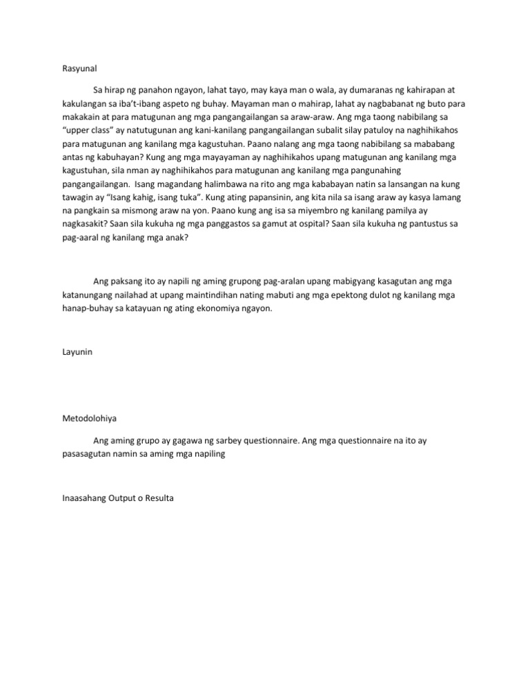 Pinakamabisang Paraan ng Pag-iipon ng Pera Para sa mga Estudyante ng 1-AMC SY2014- 2015 Rasyunal Bilang mga estudyante ng Financial Management ay mahalaga na malaman naming. Mula sa nabuong paksa para sa gagawin mong pannaliksik pahayag ng tesis at balangkas ay makabubuo ka ng isang konseptong papel. Maisa-isa ang mga sanhi at bunga ng mga pangyayari.