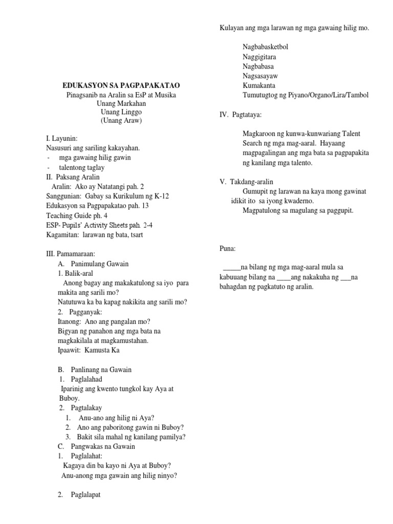 1lesson Plan Edukasyon Sa Pagpapakatao K 12a Pdf